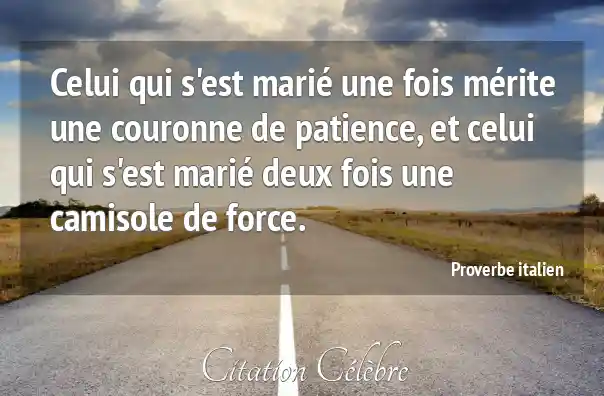 Celui qui s'est marié une fois mérite une couronne de patience, et celui qui s'est marié deux fois une camisole de force.
