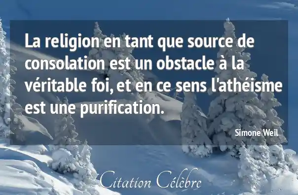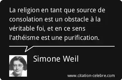 La religion en tant que source de consolation est un obstacle à la véritable foi, et en ce sens l'athéisme est une purification.