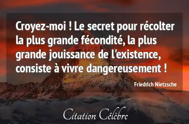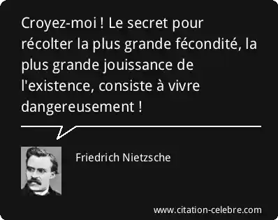 Croyez-moi ! Le secret pour récolter la plus grande fécondité, la plus grande jouissance de l'existence, consiste à vivre dangereusement !