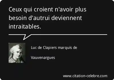 Ceux qui croient n'avoir plus besoin d'autrui deviennent intraitables.