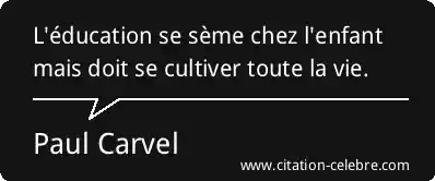 L'éducation se sème chez l'enfant mais doit se cultiver toute la vie.