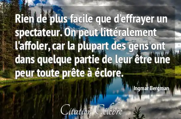Rien de plus facile que d'effrayer un spectateur. On peut littéralement l'affoler, car la plupart des gens ont dans quelque partie de leur être une peur toute prête à éclore.
