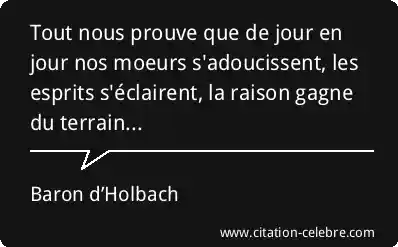 Tout nous prouve que de jour en jour nos moeurs s'adoucissent, les esprits s'éclairent, la raison gagne du terrain...