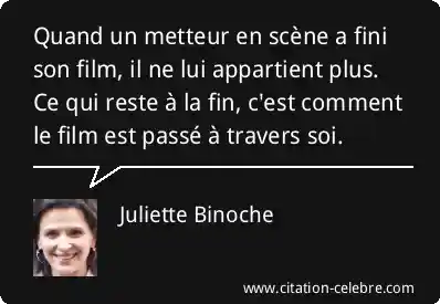 Quand un metteur en scène a fini son film, il ne lui appartient plus. Ce qui reste à la fin, c'est comment le film est passé à travers soi.