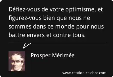 Défiez-vous de votre optimisme, et figurez-vous bien que nous ne sommes dans ce monde pour nous battre envers et contre tous.