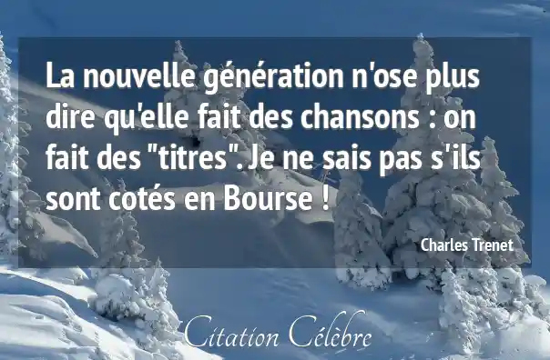 La nouvelle génération n'ose plus dire qu'elle fait des chansons : on fait des "titres". Je ne sais pas s'ils sont cotés en Bourse !