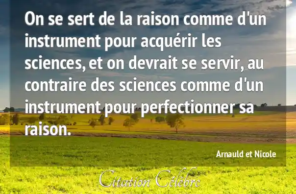 On se sert de la raison comme d'un instrument pour acquérir les sciences, et on devrait se servir, au contraire des sciences comme d'un instrument pour perfectionner sa raison.