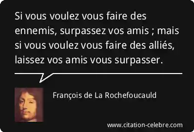 Si vous voulez vous faire des ennemis, surpassez vos amis ; mais si vous voulez vous faire des alliés, laissez vos amis vous surpasser.