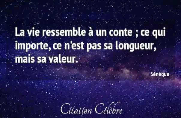 La vie ressemble à un conte ; ce qui importe, ce n'est pas sa longueur, mais sa valeur.