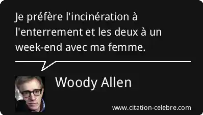 Citation Woody Allen femme : Je préfère l'incinération à l'enterrement et les deux à un...