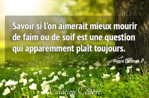 Savoir si l'on aimerait mieux mourir de faim ou de soif est une question qui apparemment plaît toujours.