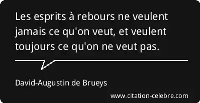 Les esprits à rebours ne veulent jamais ce qu'on veut, et veulent toujours ce qu'on ne veut pas.