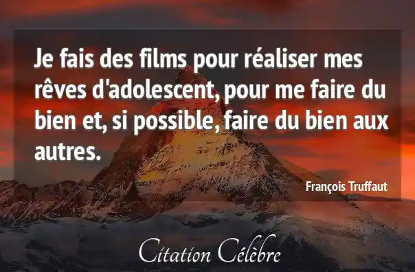 Je fais des films pour réaliser mes rêves d'adolescent, pour me faire du bien et, si possible, faire du bien aux autres.