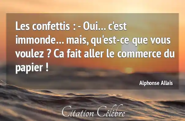 Les confettis : - Oui... c'est immonde... mais, qu'est-ce que vous voulez ? Ca fait aller le commerce du papier !