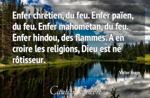 Enfer chrétien, du feu. Enfer païen, du feu. Enfer mahométan, du feu. Enfer hindou, des flammes. A en croire les religions, Dieu est né rôtisseur.