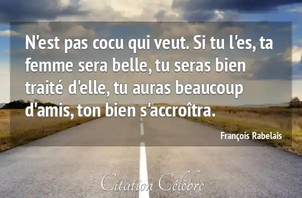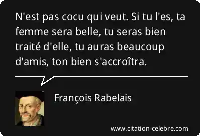 N'est pas cocu qui veut. Si tu l'es, ta femme sera belle, tu seras bien traité d'elle, tu auras beaucoup d'amis, ton bien s'accroîtra.