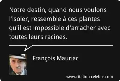 Notre destin, quand nous voulons l'isoler, ressemble à ces plantes qu'il est impossible d'arracher avec toutes leurs racines.