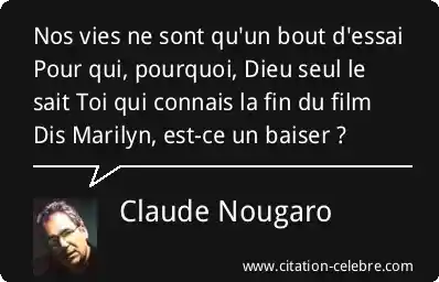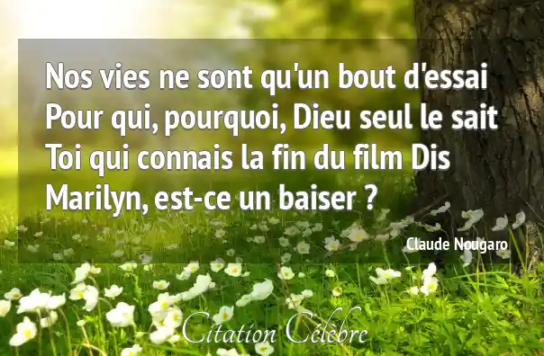 Nos vies ne sont qu'un bout d'essai Pour qui, pourquoi, Dieu seul le sait Toi qui connais la fin du film Dis Marilyn, est-ce un baiser ?