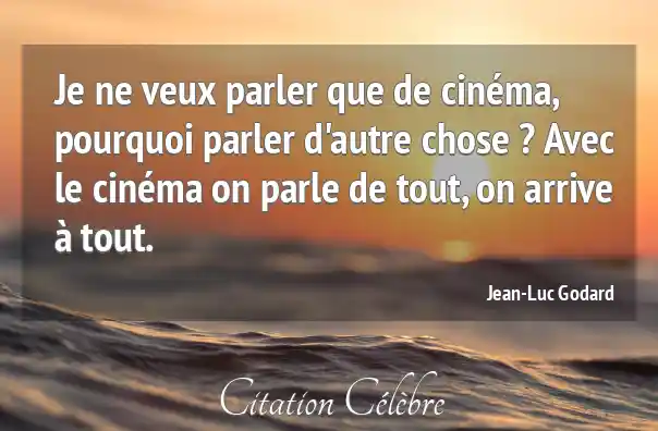 Je ne veux parler que de cinéma, pourquoi parler d'autre chose ? Avec le cinéma on parle de tout, on arrive à tout.