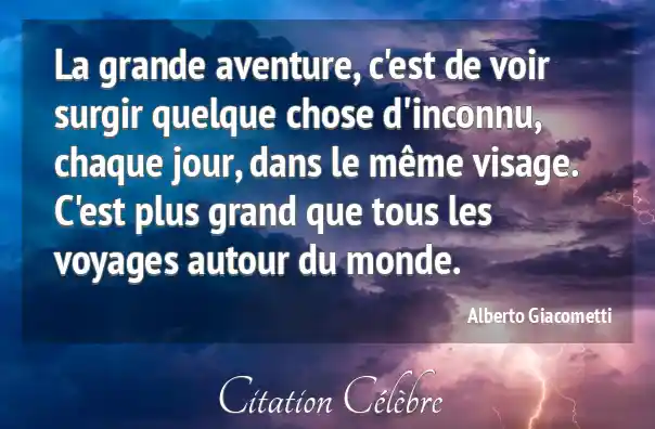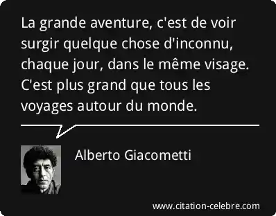 La grande aventure, c'est de voir surgir quelque chose d'inconnu, chaque jour, dans le même visage. C'est plus grand que tous les voyages autour du monde.
