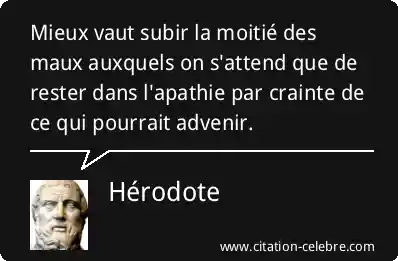 Mieux vaut subir la moitié des maux auxquels on s'attend que de rester dans l'apathie par crainte de ce qui pourrait advenir.