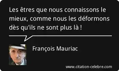 Les êtres que nous connaissons le mieux, comme nous les déformons dès qu'ils ne sont plus là !