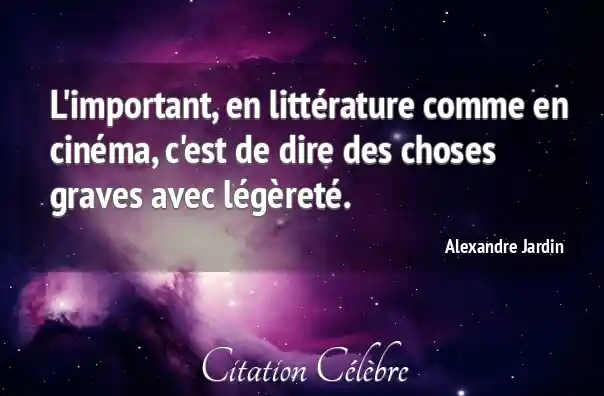 L'important, en littérature comme en cinéma, c'est de dire des choses graves avec légèreté.