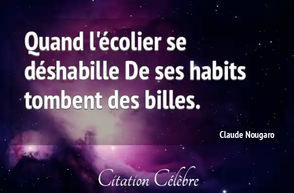 Quand l'écolier se déshabille De ses habits tombent des billes.