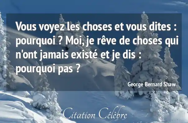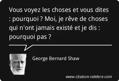 Vous voyez les choses et vous dites : pourquoi ? Moi, je rêve de choses qui n'ont jamais existé et je dis : pourquoi pas ?