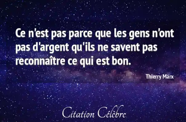 Ce n'est pas parce que les gens n'ont pas d'argent qu'ils ne savent pas reconnaître ce qui est bon.