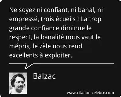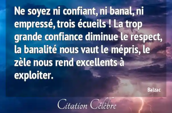 Ne soyez ni confiant, ni banal, ni empressé, trois écueils ! La trop grande confiance diminue le respect, la banalité nous vaut le mépris, le zèle nous rend excellents à exploiter.