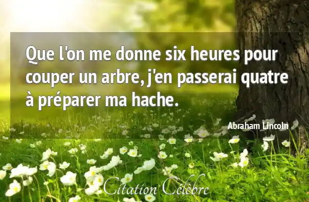 Que l'on me donne six heures pour couper un arbre, j'en passerai quatre à préparer ma hache.
