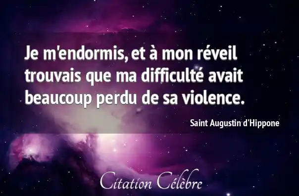 Je m'endormis, et à mon réveil trouvais que ma difficulté avait beaucoup perdu de sa violence.
