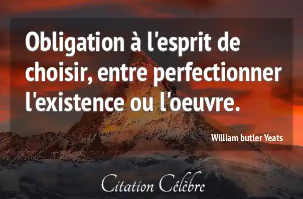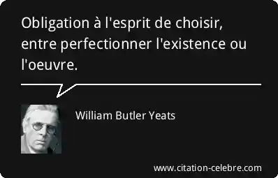 Obligation à l'esprit de choisir, entre perfectionner l'existence ou l'oeuvre.