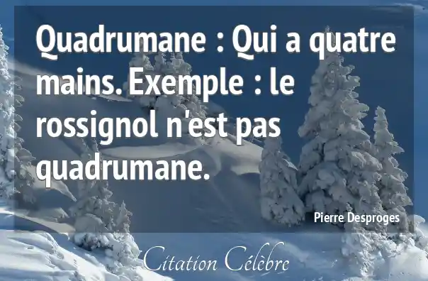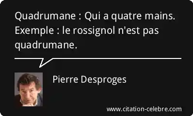 Quadrumane : Qui a quatre mains. Exemple : le rossignol n'est pas quadrumane.