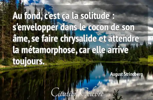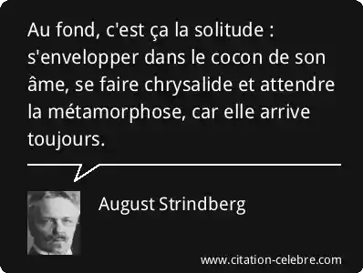 Au fond, c'est ça la solitude : s'envelopper dans le cocon de son âme, se faire chrysalide et attendre la métamorphose, car elle arrive toujours.