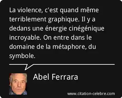 La violence, c'est quand même terriblement graphique. Il y a dedans une énergie cinégénique incroyable. On entre dans le domaine de la métaphore, du symbole.