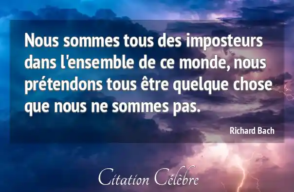 Nous sommes tous des imposteurs dans l'ensemble de ce monde, nous prétendons tous être quelque chose que nous ne sommes pas.