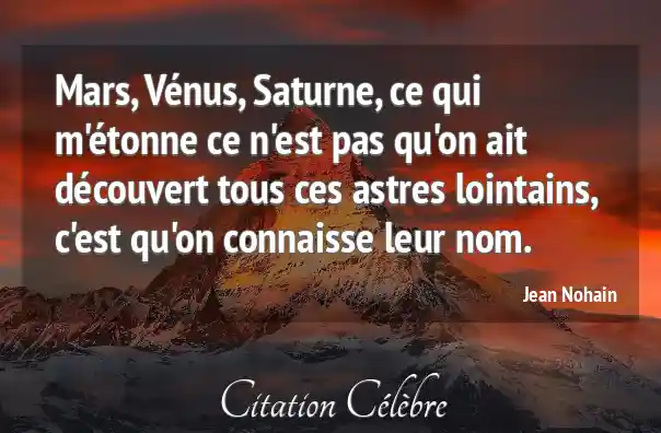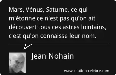 Mars, Vénus, Saturne, ce qui m'étonne ce n'est pas qu'on ait découvert tous ces astres lointains, c'est qu'on connaisse leur nom.
