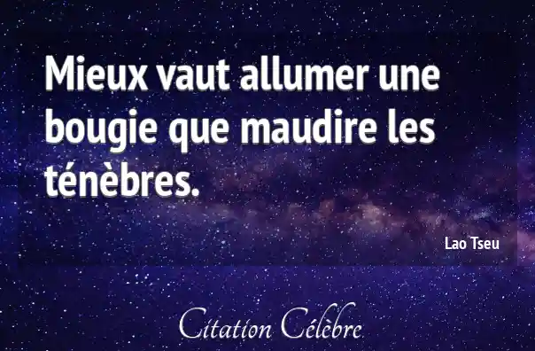 Mieux vaut allumer une bougie que maudire les ténèbres.