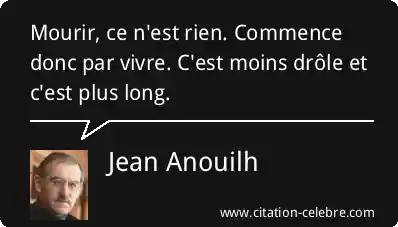 Citation Jean Anouilh rien : Mourir, ce n'est rien. Commence donc par vivre. C'est moins...