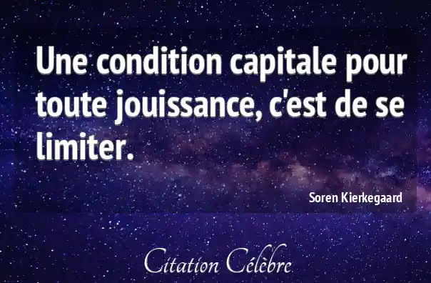 Une condition capitale pour toute jouissance, c'est de se limiter.