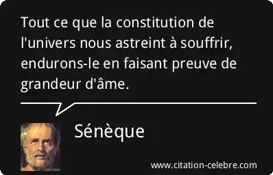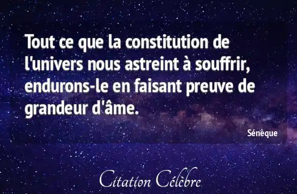 Tout ce que la constitution de l'univers nous astreint à souffrir, endurons-le en faisant preuve de grandeur d'âme.