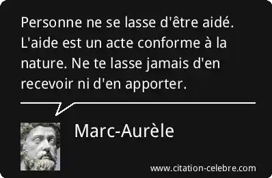 Personne ne se lasse d'être aidé. L'aide est un acte conforme à la nature. Ne te lasse jamais d'en recevoir ni d'en apporter.