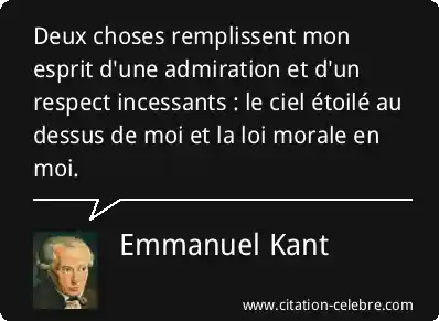Deux choses remplissent mon esprit d'une admiration et d'un respect incessants : le ciel étoilé au dessus de moi et la loi morale en moi.