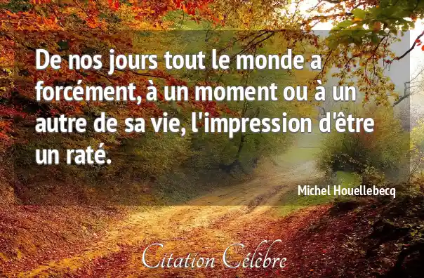 De nos jours tout le monde a forcément, à un moment ou à un autre de sa vie, l'impression d'être un raté.