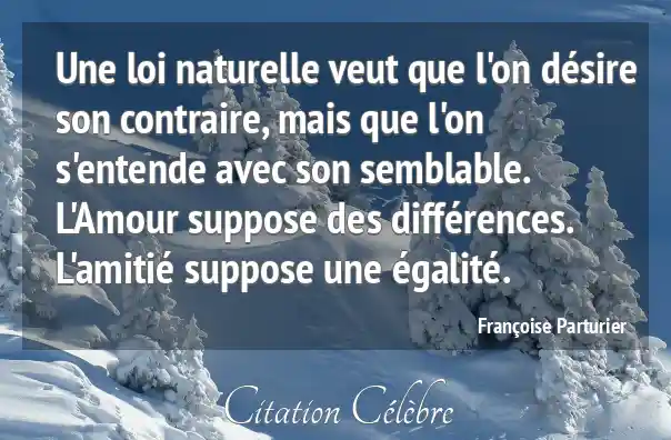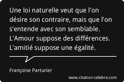 Une loi naturelle veut que l'on désire son contraire, mais que l'on s'entende avec son semblable. L'Amour suppose des différences. L'amitié suppose une égalité.