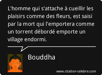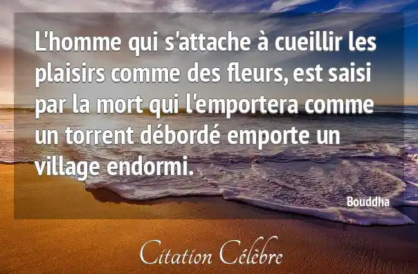 L'homme qui s'attache à cueillir les plaisirs comme des fleurs, est saisi par la mort qui l'emportera comme un torrent débordé emporte un village endormi.