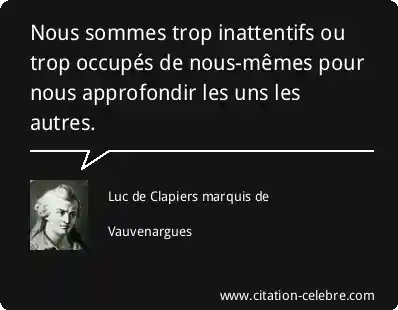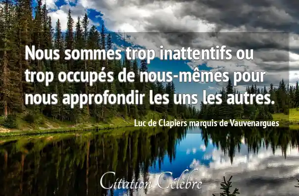 Nous sommes trop inattentifs ou trop occupés de nous-mêmes pour nous approfondir les uns les autres.