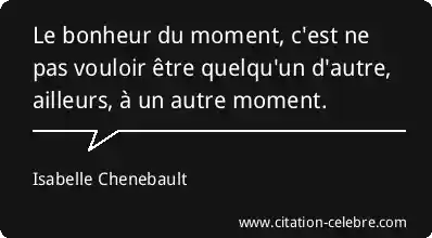 Le bonheur du moment, c'est ne pas vouloir être quelqu'un d'autre, ailleurs, à un autre moment.